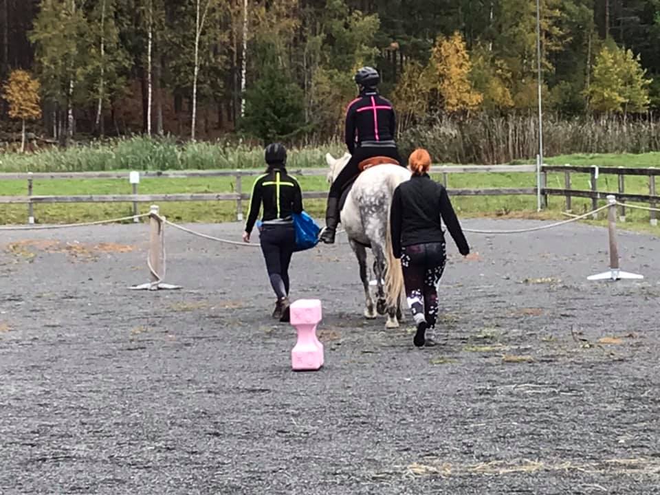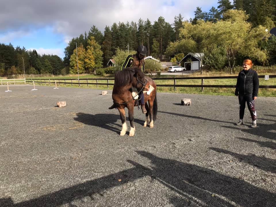 Har landat hemma i soffan igen efter en härlig och inspirerande helgträff i Söderköping 🙂 Helgträffen är en del av den distanskurs som jag går för Anne & Joanna/Relationsbaserad Hästträning och denna gång var temat Ridning och (sits-/ryttar-)träning. Med på träffen var, förutom oss ca 20 kursdeltagare, även fysioterapeuten Amanda som driver Rörelsesmart. Vi började på lördag eftermiddag med ett teoripass där vi bland annat pratade om hur man kan bli just ”rörelsesmart” och använda sin kropp på ett smart sätt. Efter lite fika bar det av hem till Joanna, där vi fick se båda hästarna in action. Vi fick se hur Anne & Joanna arbetar med hästarna på ett hållbart, uppbyggande och skonsamt sätt. Bland annat fastnade jag för en balansbräda som verkar vara supersmart. Egentligen en väldigt enkel konstruktion – bara några brädbitar sammanfogade på ett smart sätt 🙂 Det är bara att börja bygga!