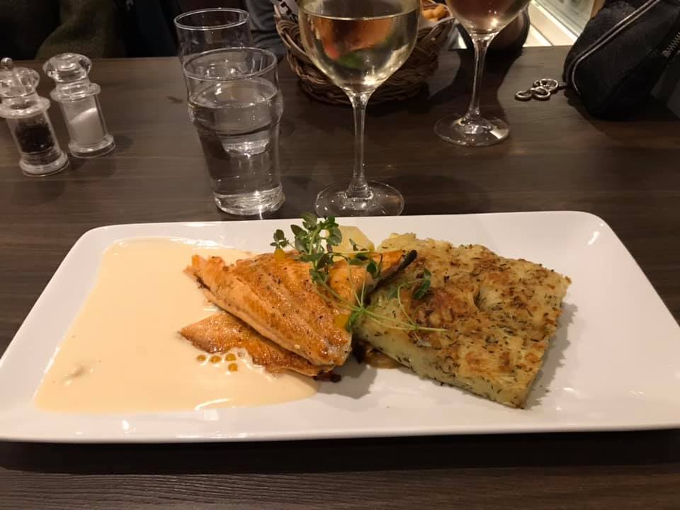 Jag övernattade på mysiga Slussen rum i Söderköping som ligger – precis som det låter – precis vid Slussen! SÅ vackert framför allt på söndag morgon när dimman låg över vattnen och solen sken igenom. Magiskt!! Vi var 4 tjejer som bodde på Slussen, så efter kursen på lördag kväll gav vi oss ut för att ”göra Söderköping”. Inte mycket action, men vi hittade iallafall en riktigt trevlig restaurang och fick fortsätta babbla häst över god mat och ett glas vin.