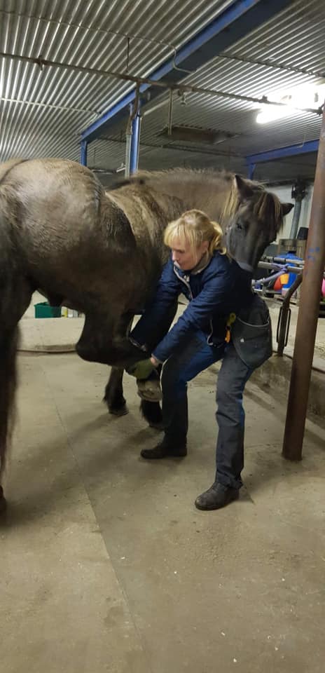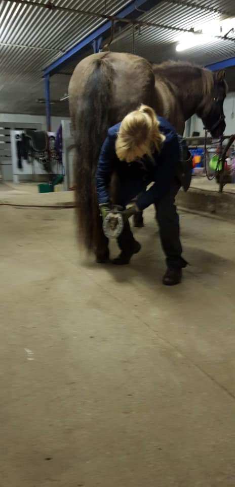 Jag har velat lära mig massera Reykur för att göra det jag brukar göra med honom – fast på ett mer proffsigt sätt 🙂 Därför bad jag duktiga Angelica från Linnealyckans Hästhälsa att komma ut och visa mig och min stallkompis Rosie hur vi ska massera och stretcha våra hästar. Hon började med Rosies häst Smaetla som verkade nöjd och glad – förutom ett bakben som gör lite ont. Angelica gav oss bra tips på hur vi kan ta hand om våra pälsklingar i vardagen. När Smaetla var färdig, så var det dags för Reykur. När jag tog ut honom ur boxen, slog det mig plötsligt att han medicineras med kortison för sina luftvägar just nu och naturligtvis är då massage inte så bra! SÅ dumt av mig att inte tänka på det. Angelica kunde ändå ge mig lite tips på hur/var jag kan massera honom (när han är av med kortisonet) och visade mig hur jag kan stretcha honom.