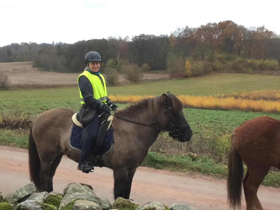 I helgen red jag och sonen ut för första gången tillsammans med hans nya häst Lótus. Vi valde en lite kortare runda – ca 30 minuter – och jag lät dem styra tempot. Hans häst är en 7-årig valack som inte har blivit så mycket riden de senaste åren. Det är en lugn och trygg kille, men samtidigt väldigt nyfiken och såklart lite osäker i vissa situationer – han behöver helt enkelt lära sig 🙂 Uteritten gick toppenbra och Lótus (sonens häst) valde t.o.m. att gå först under vissa sträckor. Min Reykur är cool, blir inte rädd för mycket och är ett bra sällskap när man ska ta en runda för första gången.