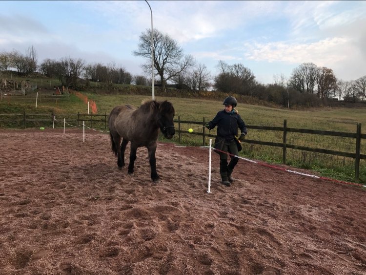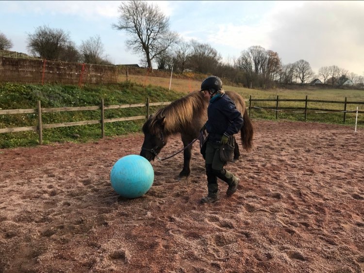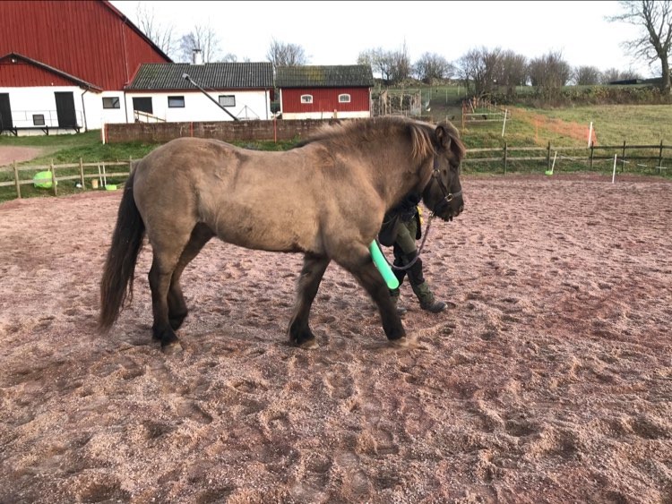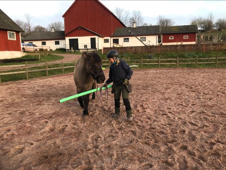 Vi började med Reykur. Han är van vid både pilatesbollen och poolnoodle, så jag testade att börja med dessa så att han skulle känna igen sig. Det gick SÅ bra! Han har inte riktigt fattat det där med poolnoodle innan, men idag kunde man verkligen se att han försökte få upp knäna för att nudda den 🙂 Pilatesbollen älskar han att springa efter, och idag kunde jag också känna att han själv försökte puffa iväg den. SÅ kul!